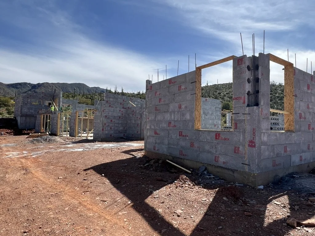 Here is the construction progress for a home in Cave Creek, with insulated concrete forms being used for building.