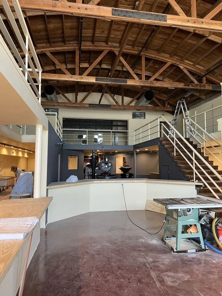 Here you can see the progress made on Firecreek Coffee, a remarkable project located on what was previously known as the "Miracle Mile" in downtown Phoenix. Preserving the historical values and originality of this building during renovation was important to the client. The bold bow trusses add a level of uniqueness to the location.
